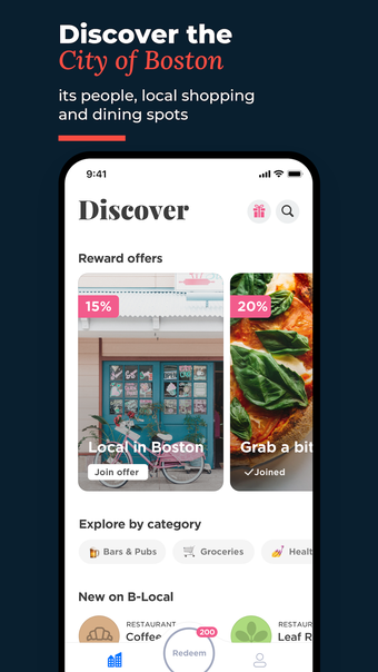 One of the standout features of B-Local is its rewards program. Users can join reward offers and earn Boston Points by shopping at local businesses. These points can then be redeemed at participating businesses around town, helping to support the economic recovery of neighborhood commercial districts.